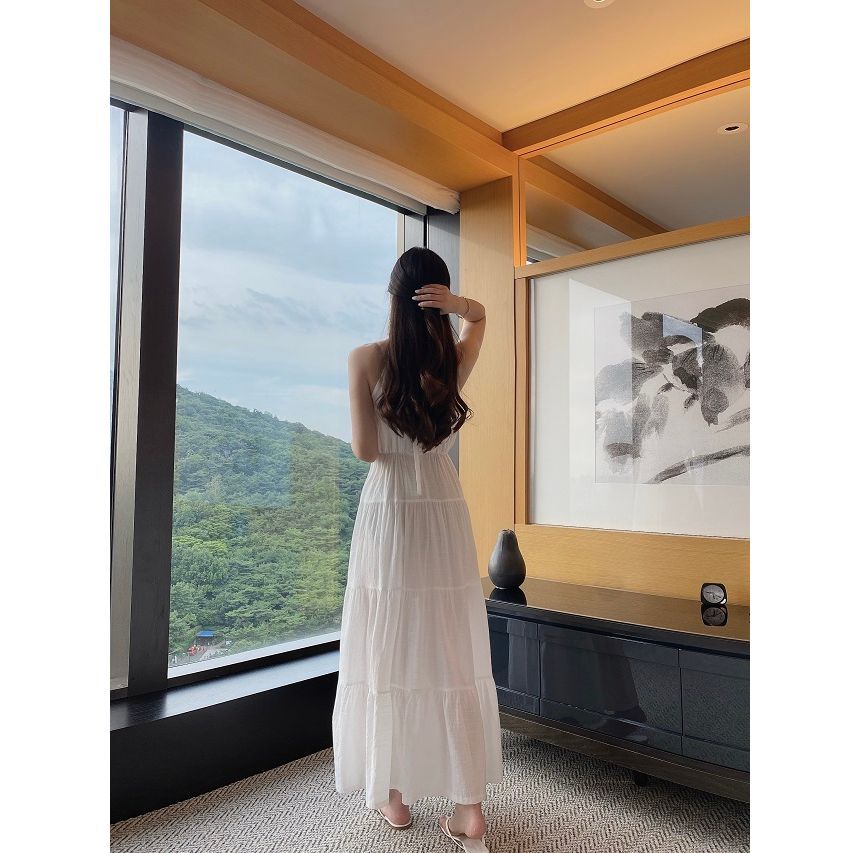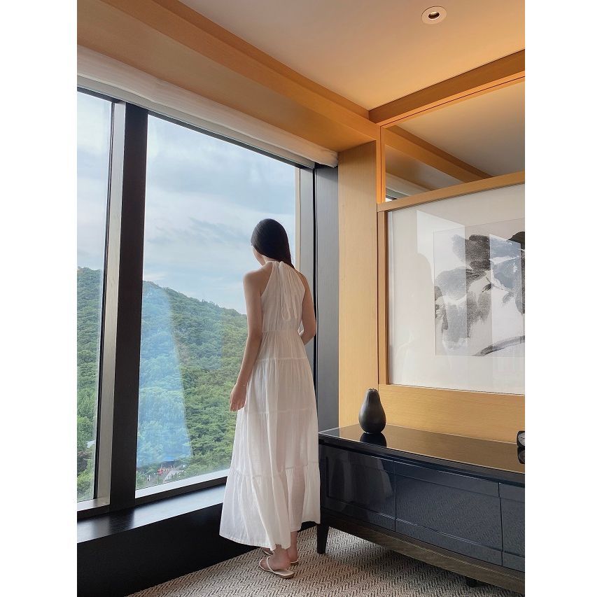 Halter Plain Maxi A-Line Dress