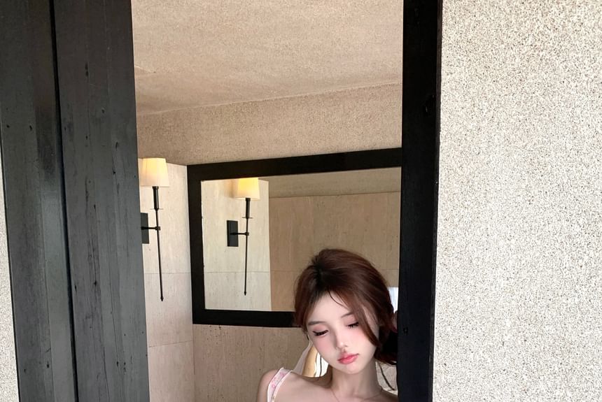 High Floral Rise Pencil Top Mini Ruffle Skirt Mest Patterned Trim / Print Bow Lace Camisole Panel