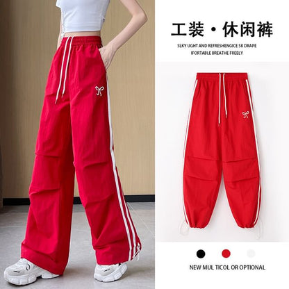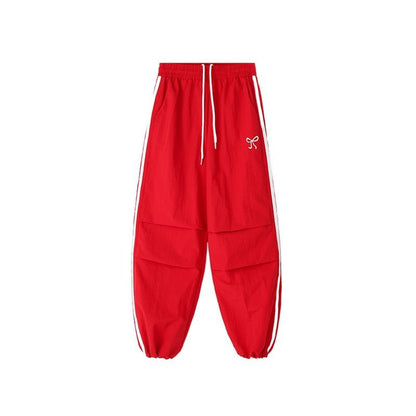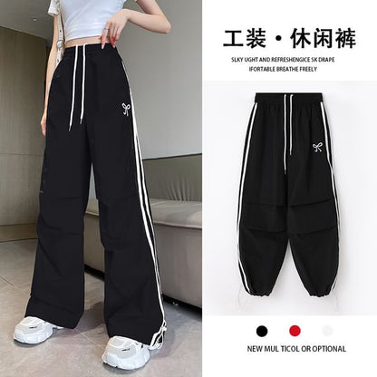 High Rise Bow Print Striped Loose-Fit Wide-Leg Sweatpants