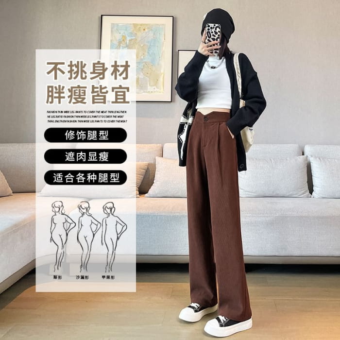 High Rise Plain Corduroy Wide Leg Slacks