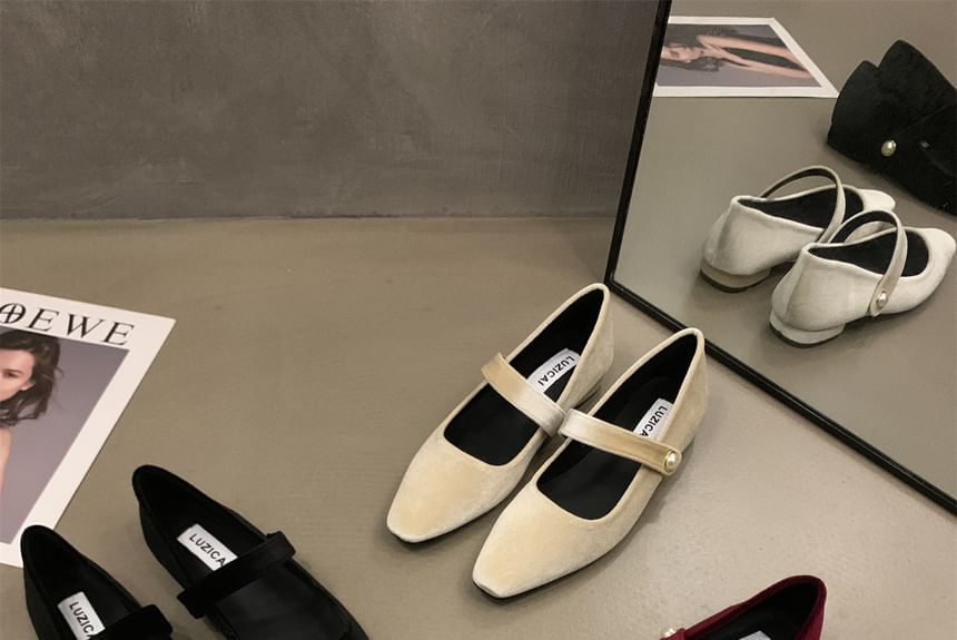 Square Toe Velvet Mary Jane Shoes