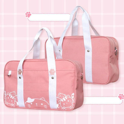 Introducing the elegant Kawaii JK Cat Cartoon Uniform Crossbody Bag. This bag features a charming cartoon cat design and a stylish crossbody silhouette. Perfect for adding a touch of cuteness to any outfit, while keeping your essentials close at hand. Ideal for any cat lover or fashion enthusiast.