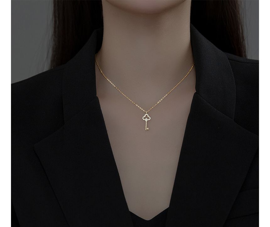 Key Rhinestone Pendant Sterling Silver Choker