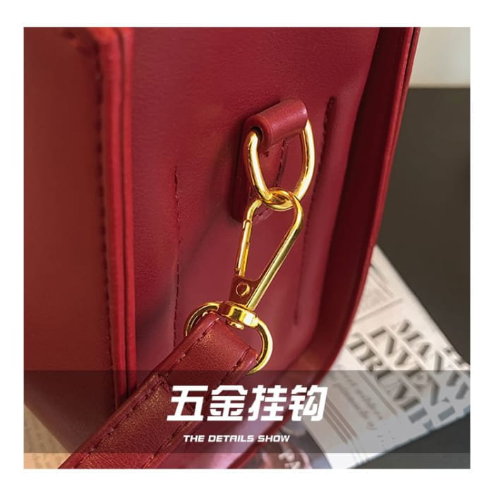 Lettering Faux Leather Crossbody Bag