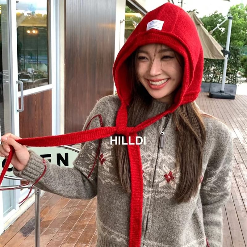 Lettering Knit Bonnet Hat