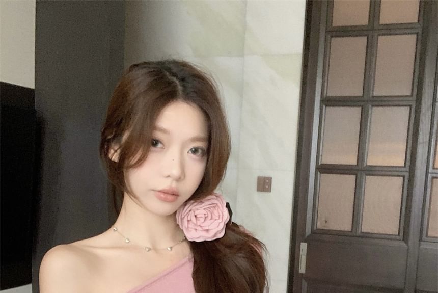 Long Sleeve Off Shoulder Plain Slit Knit Top