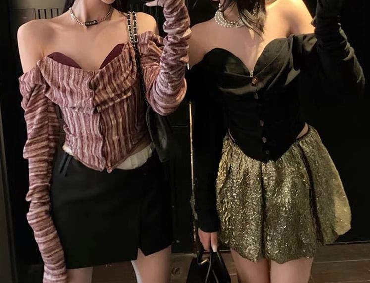 Long-Sleeve Off Shoulder Sweetheart Neckline Crop Top