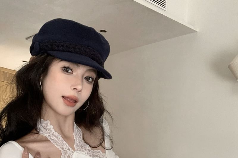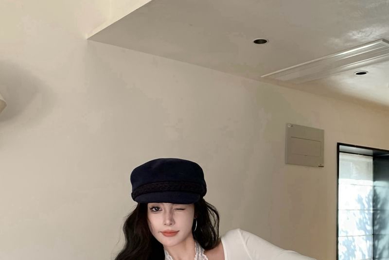 Long-Sleeve Plain Lace Trim Cropped Tee