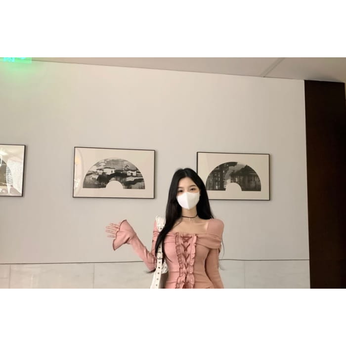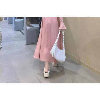 Long Sleeve Square Neck Lace Up Ruffle Mock Two Piece A-Line Dress (Various Designs)