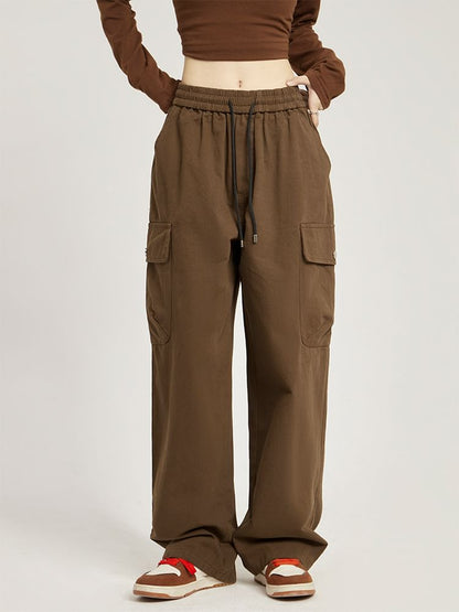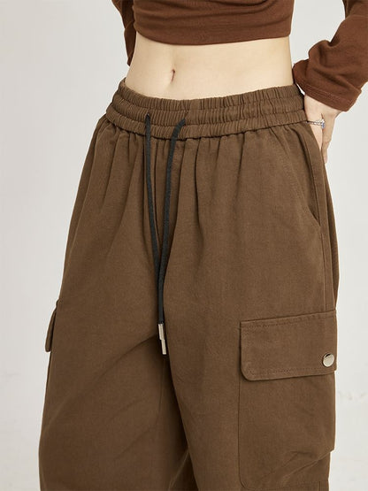 Low Rise Plain Pocket Loose-Fit Wide-Leg Sweatpants