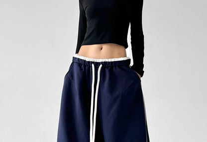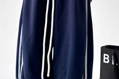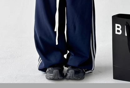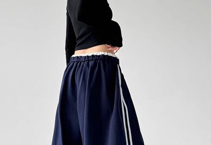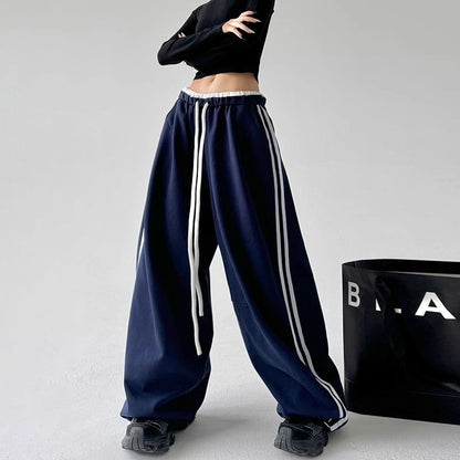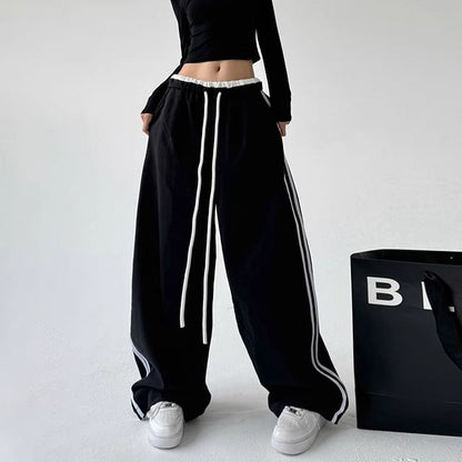 Low Waist Ruffled-Trim Striped Loose-Fit Wide-Leg Sweatpants