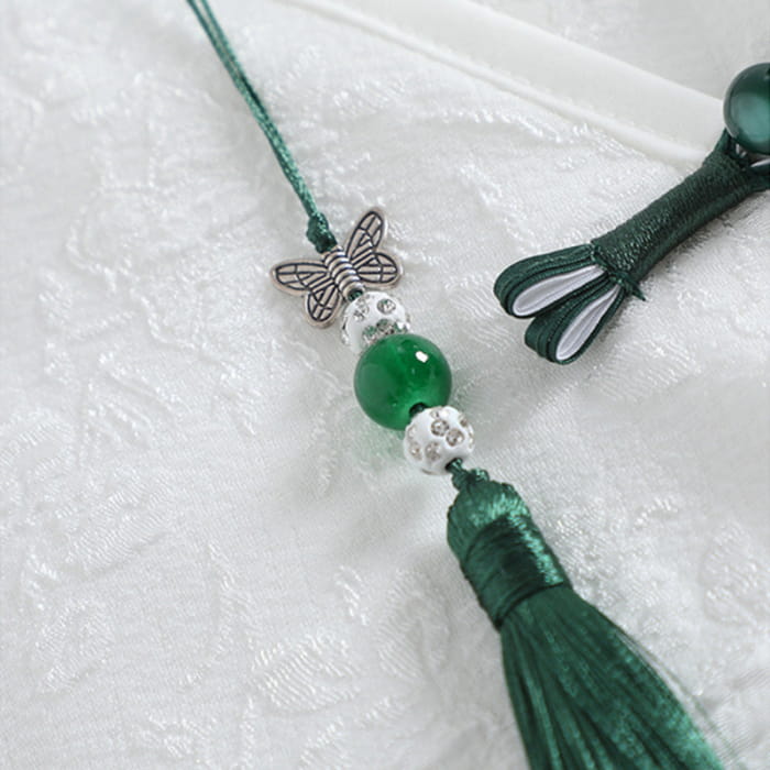 Magnificent Buckle Tassel Shirt High Waist Embroideried Pleated Skirt