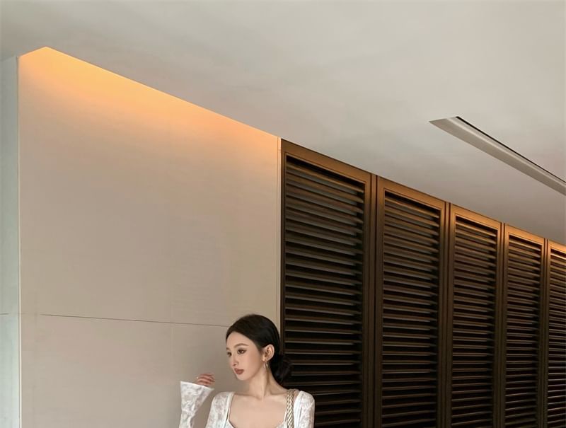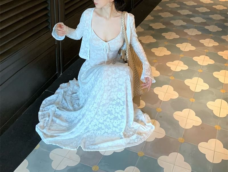 Spaghetti Strap Floral Jacquard Maxi A-Line Dress / Bolero