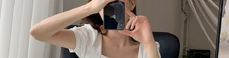 Puff Sleeve Square Neck Plain Mini A-Line Dress