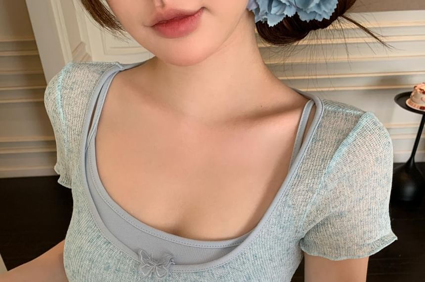 Set: Short-Sleeve Square Neck Top + Camisole Top