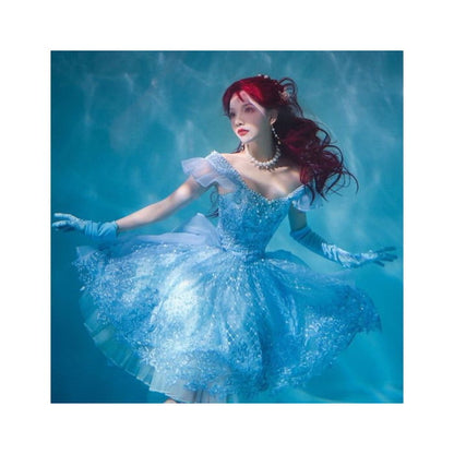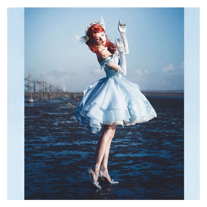Off-Shoulder Plain Lace Panel A-Line Cocktail Lolita Dress / Gloves / A-Line Skirt / Set