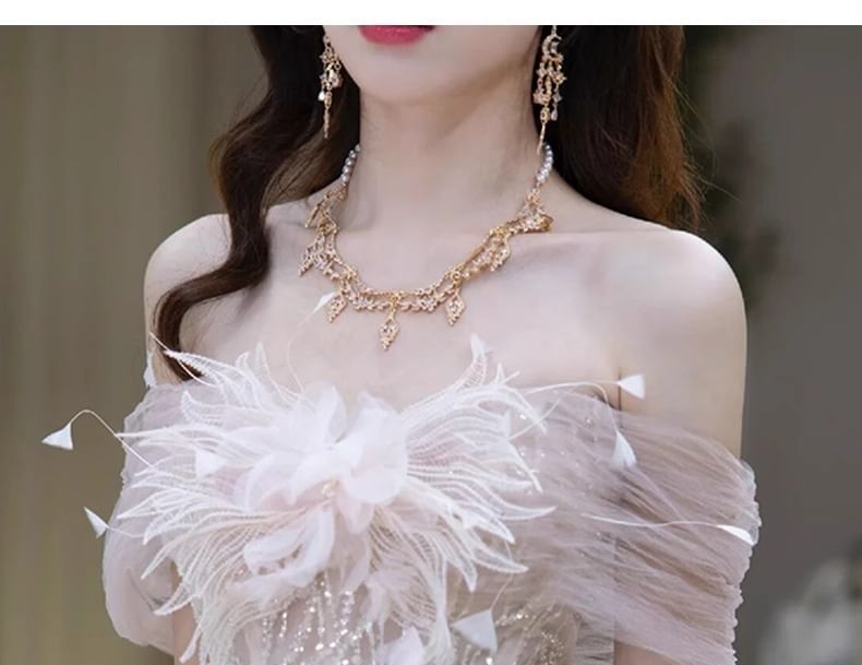 Panel Mesh Gown Evening Off-Shoulder Flower Accent Sequin Mermaid