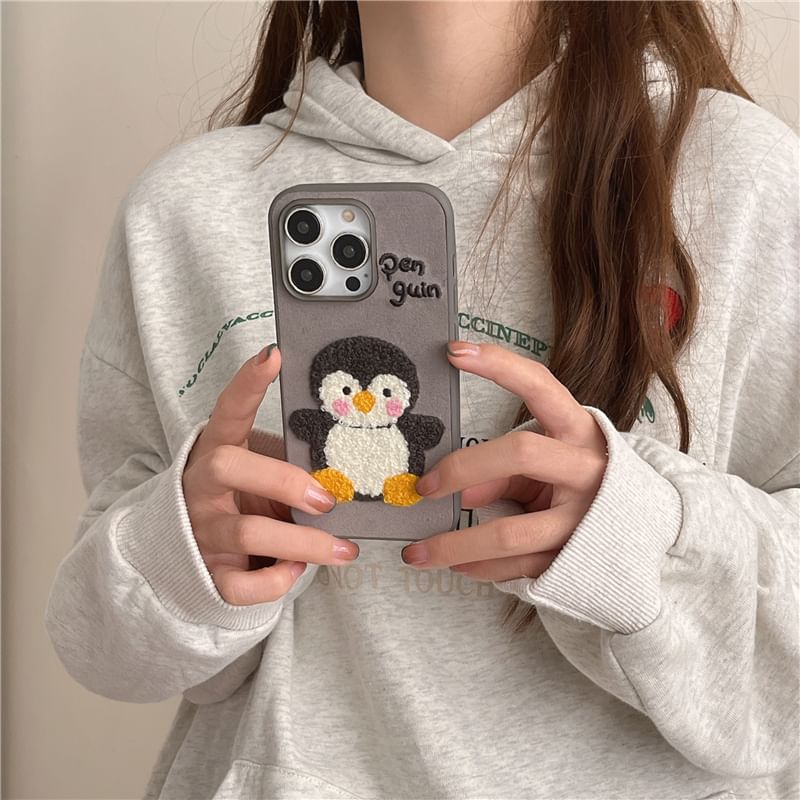Penguin Embroidered Phone Case / Faux Leather Strap / Set - iPhone 16 Pro Max / 16 Pro / 16 Plus / 16 / 15 Pro Max / 15 Pro / 15 Plus / 15 / 14 Pro Max / 14 Pro / 14 Plus / 14 / 13 Pro Max / 13 Pro / 13 / 13 Mini