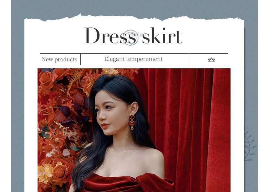 Plain Ruched Shoulder Slit Velvet Off Short-Sleeve Evening Sheath Gown