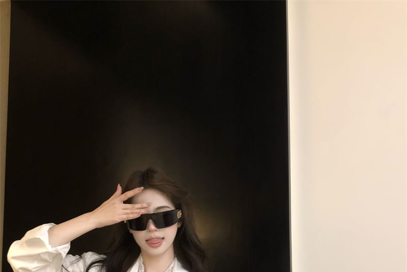 Plain Shirt Panel Lace Long Collared Sleeve