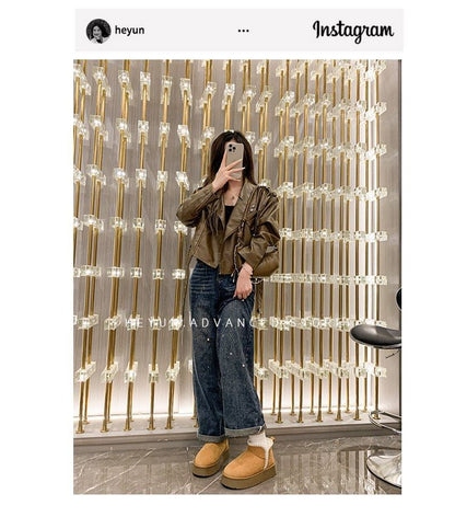 Platform Lace Trim Ankle Snow Boots