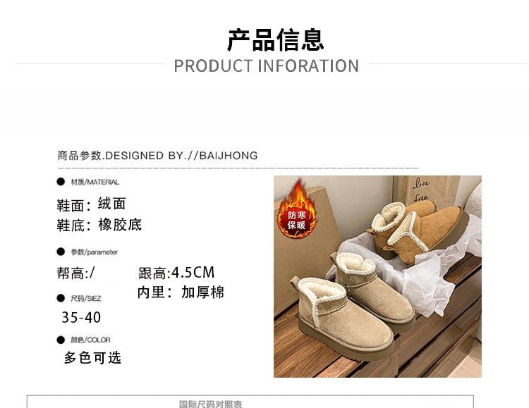 | Material: | Upper: Faux SuedeLining: CottonOutsole: Rubber |