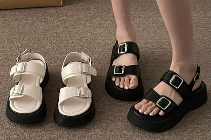 Platform Plain Buckled Faux Leather Slingback Sandals