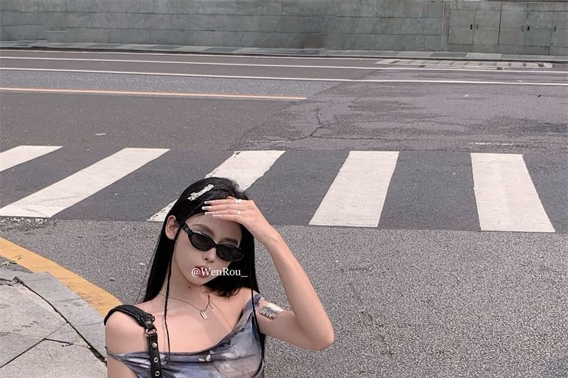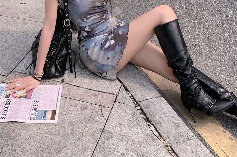 Sleeveless Cowl Neck Butterfly Mini A-Line Print Dress