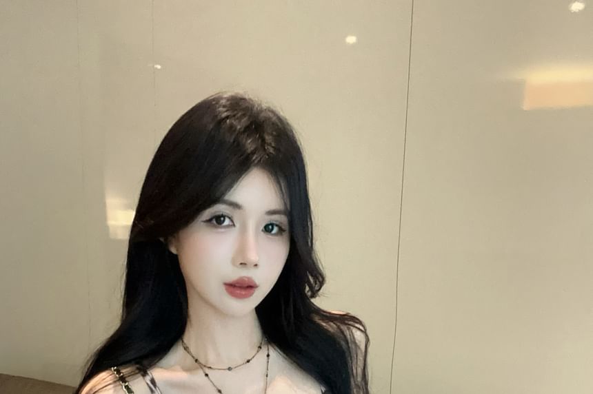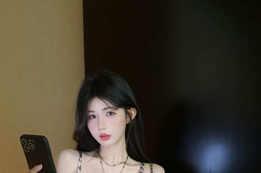 Print Top Ruffle Leopard Tie-Up Cami Slit Panel V-Neck
