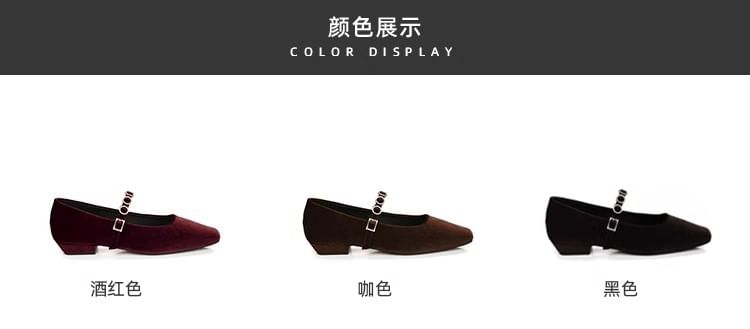 Low Heel Rhinestone Accent Velvet Mary Jane Pumps