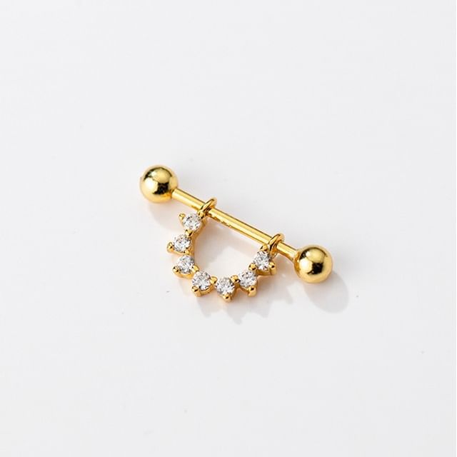 Rhinestone Sterling Silver Barbel Huggie Earring
