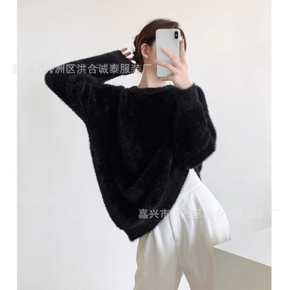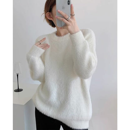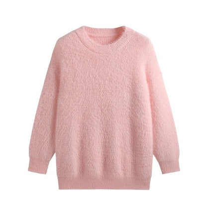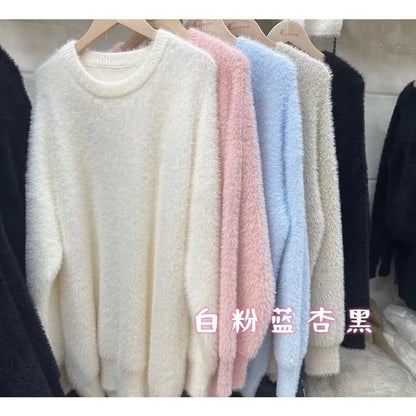 Round Neck Plain Fluffy Sweater