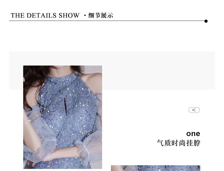 Sequin Gown Evening Cold-Shoulder Sheath