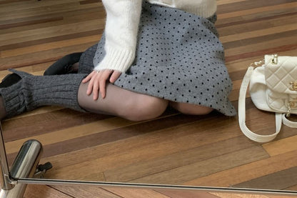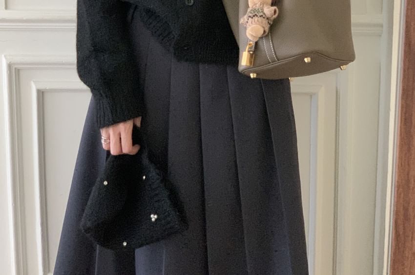 Set: Crew Neck Plain Beaded Cardigan + Beanie