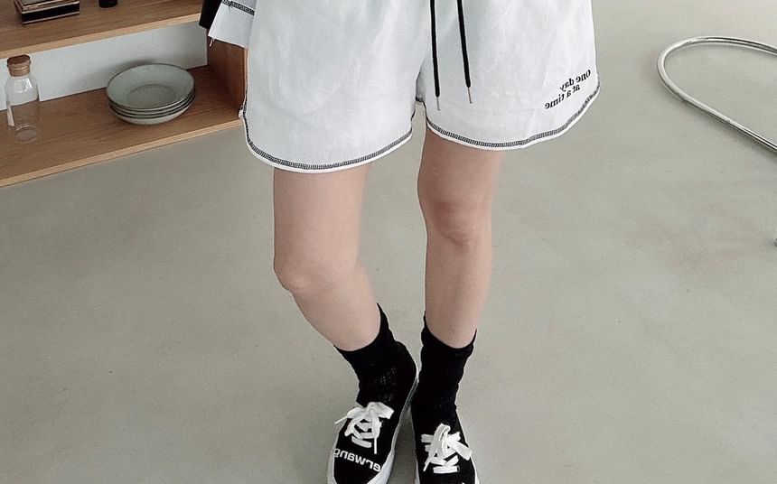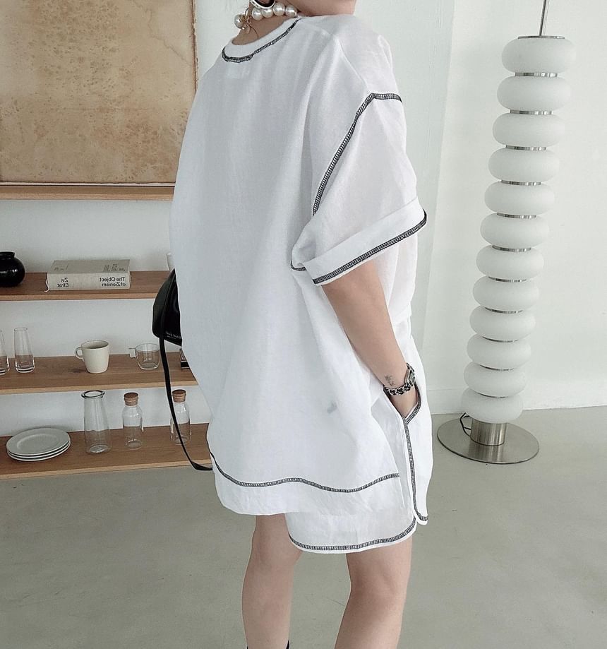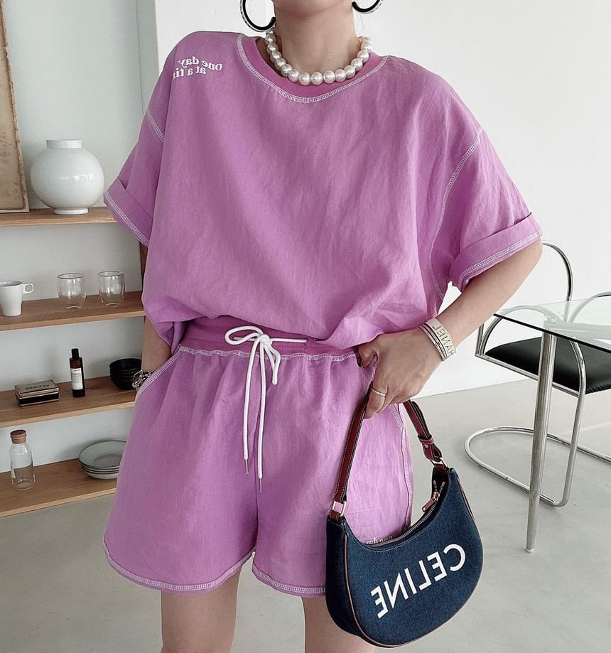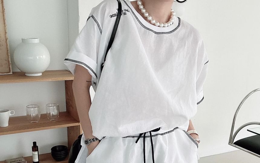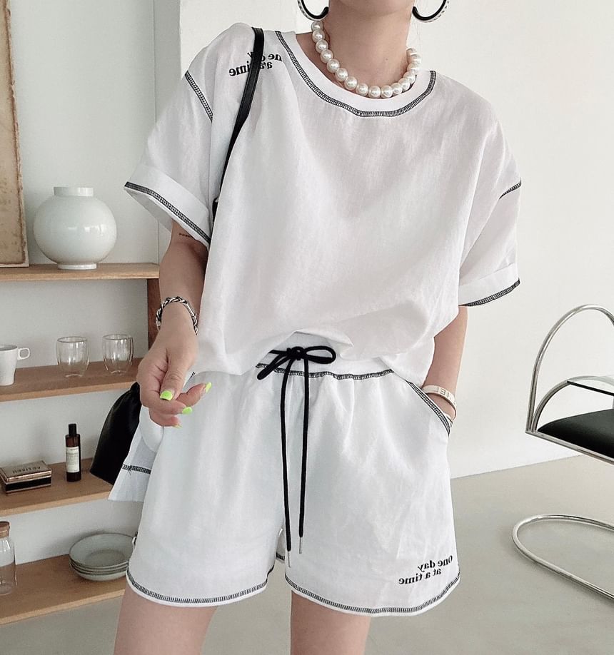 Set: Elbow-Sleeve Crewneck Plain T-Shirt + Shorts