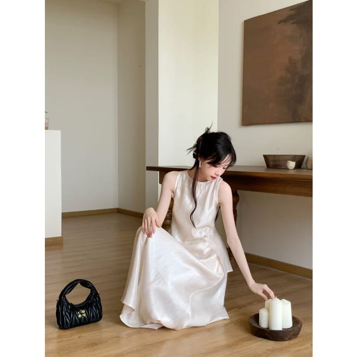 Set: Sleeveless Round Neck Slit Top + Mid Waist Plain Midi A