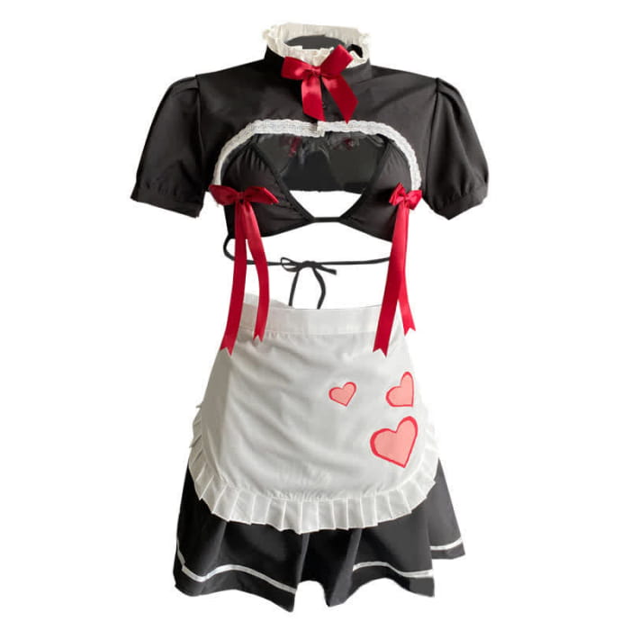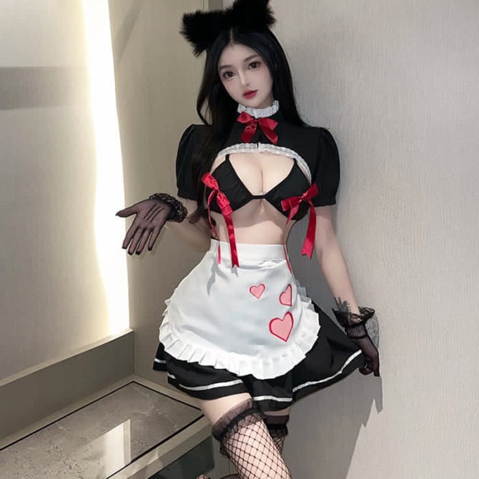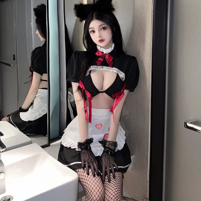 Sexy Maid Bow Decor Hollow Out Lingerie Set