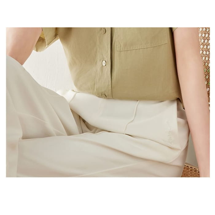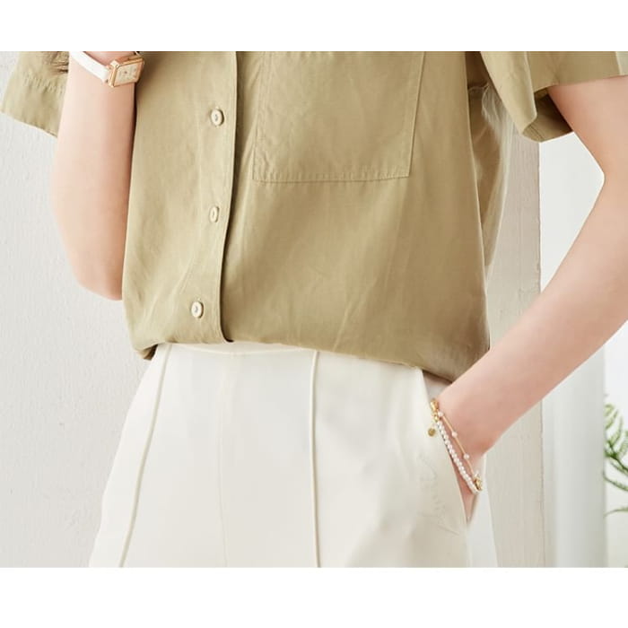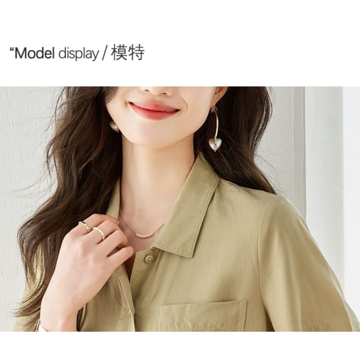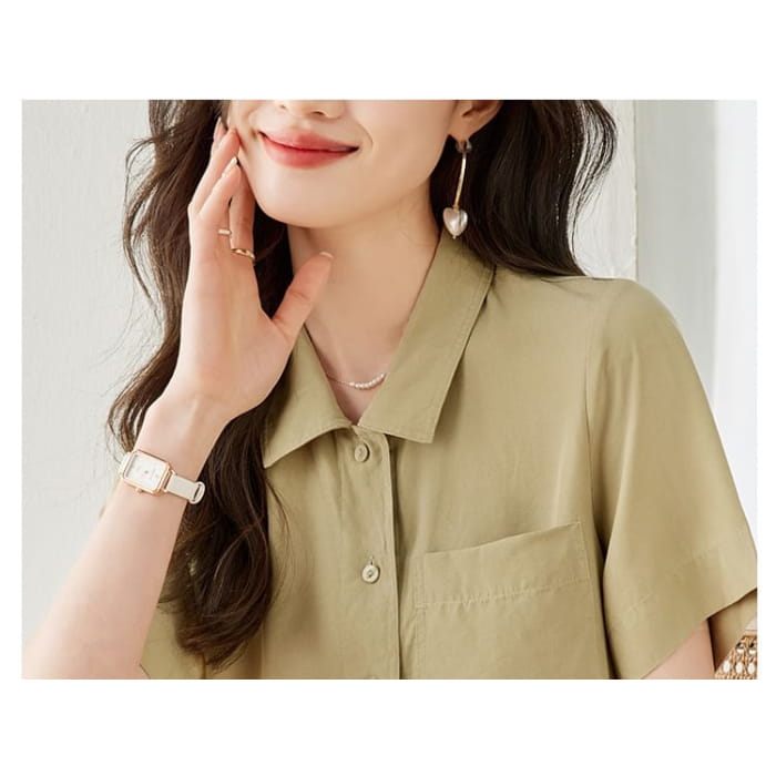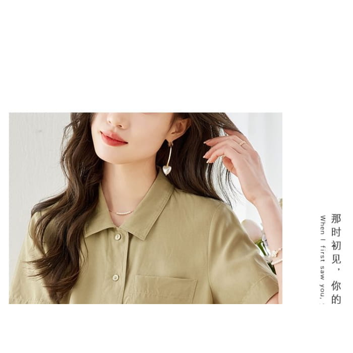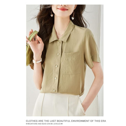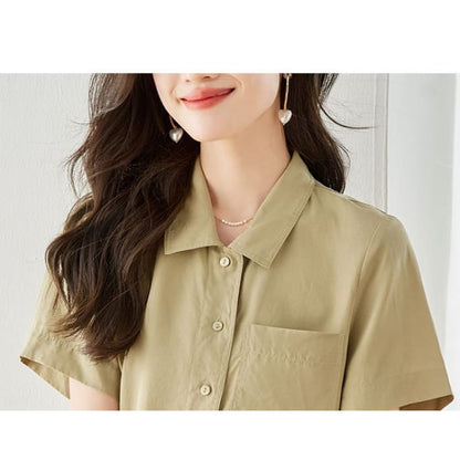 Short Sleeve Lapel Neck Solid Loose Fit Shirt