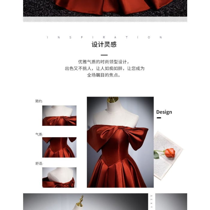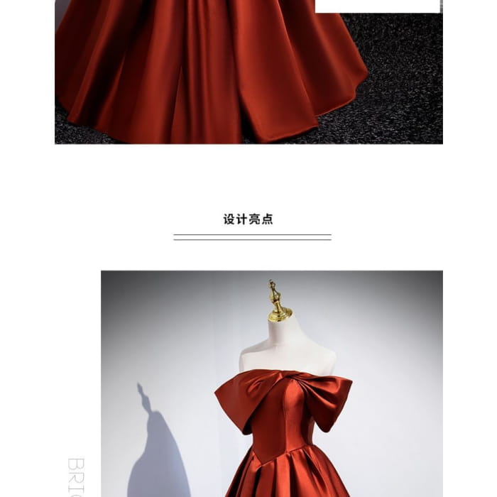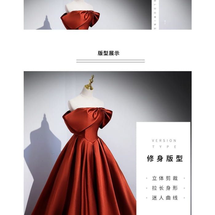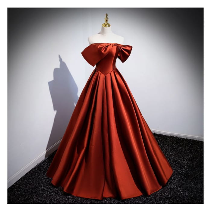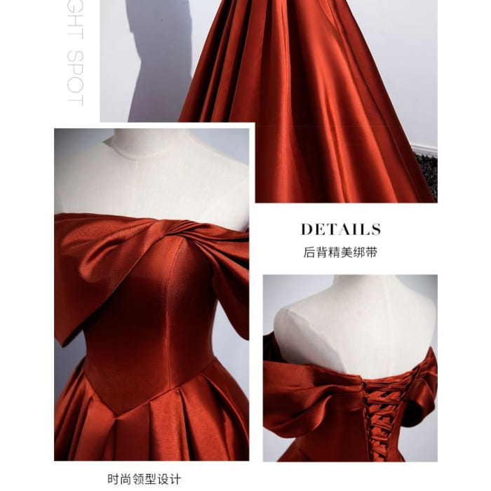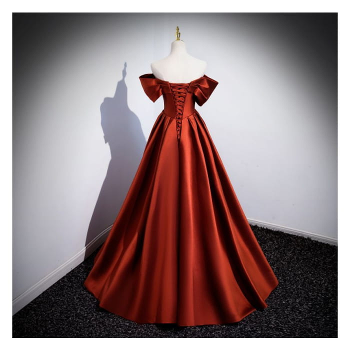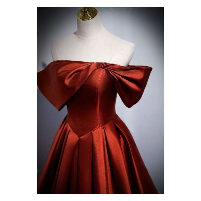 Short-Sleeve Off Shoulder Plain Pleated Satin A-Line Evening Gown