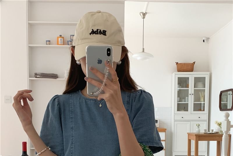 Short-Sleeve Round Neck Washed Denim Midi A-Line Dress