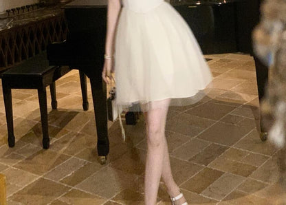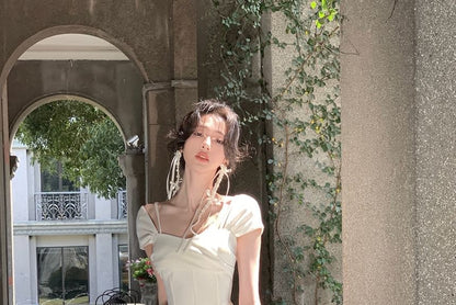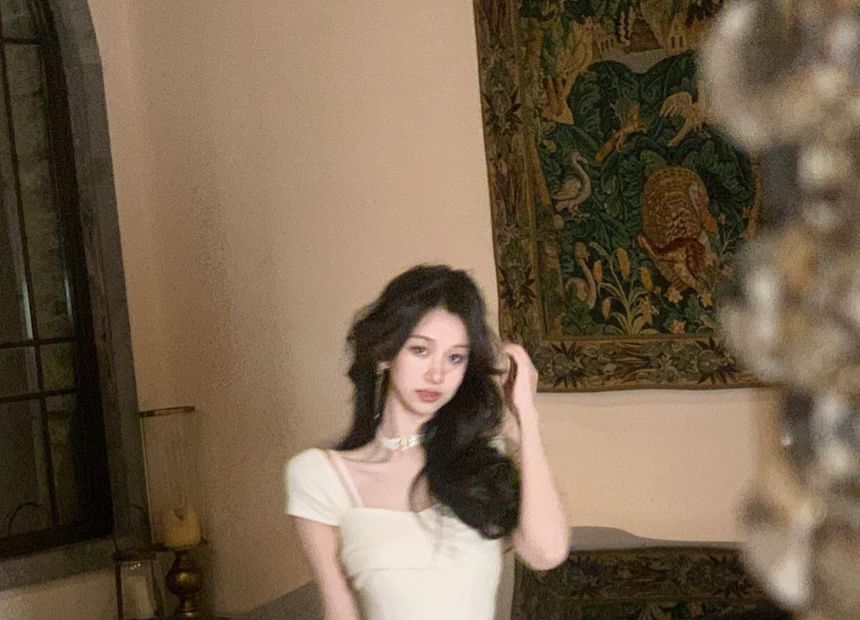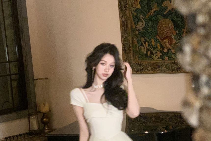 Short-Sleeve Square-Neck Plain A-Line Cocktail Dress