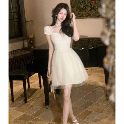Short-Sleeve Square-Neck Plain A-Line Cocktail Dress (Various Designs)