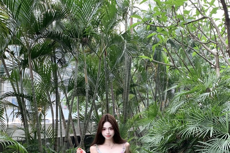 Sleeveless A-Line Ruffle Floral Mini V-Neck Print Dress