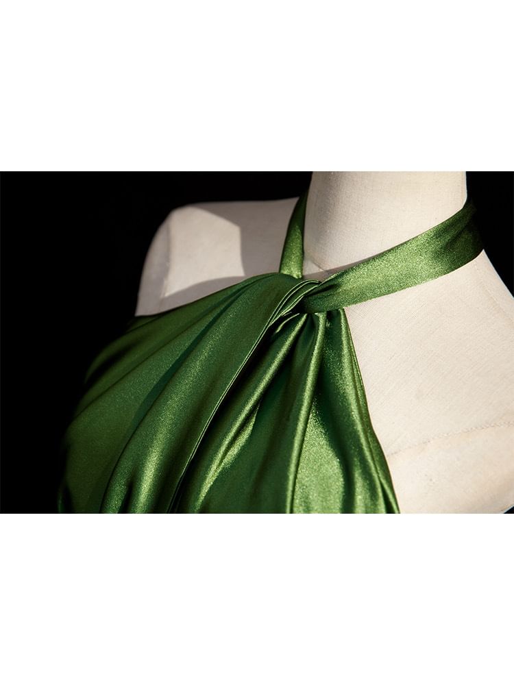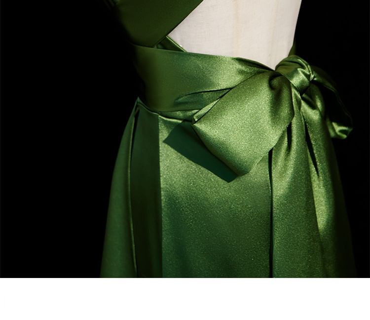 Sleeveless Halter Plain Slit A-Line Evening Gown