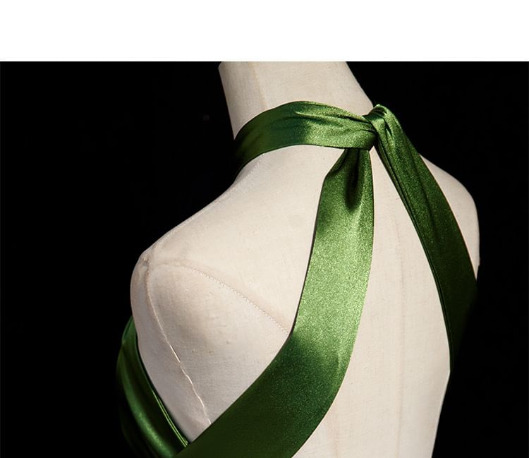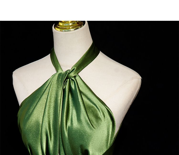 Sleeveless Evening Halter Plain A-Line Slit Gown