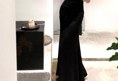 Spaghetti Strap Cowl Neck Plain Mermaid Evening Gown