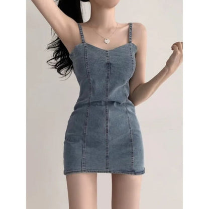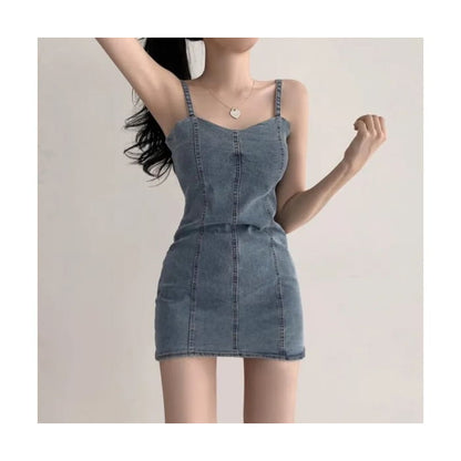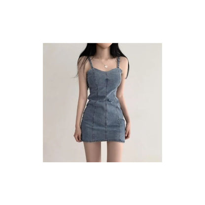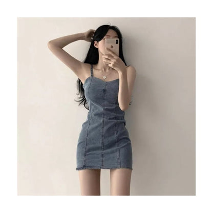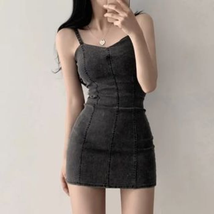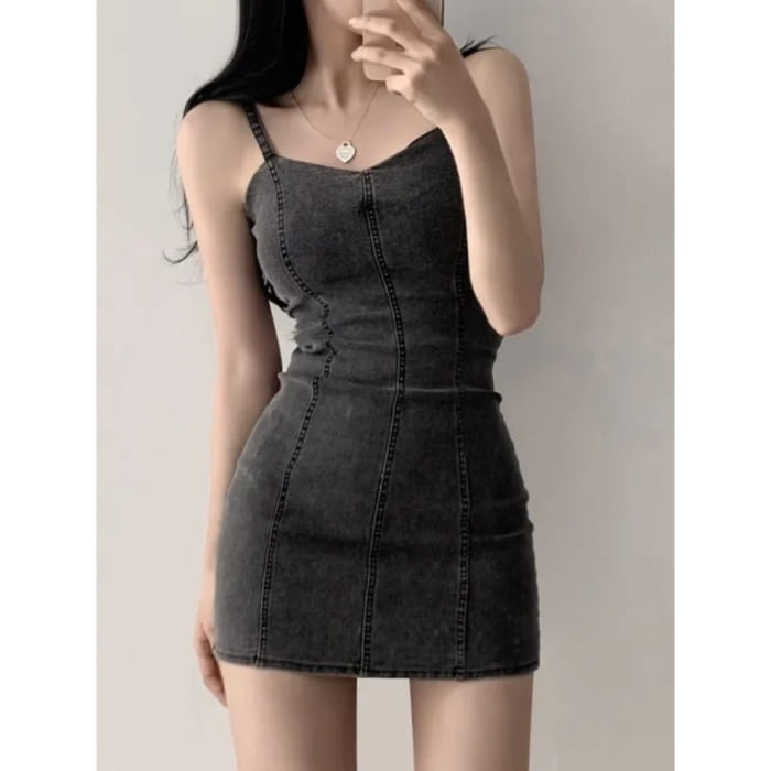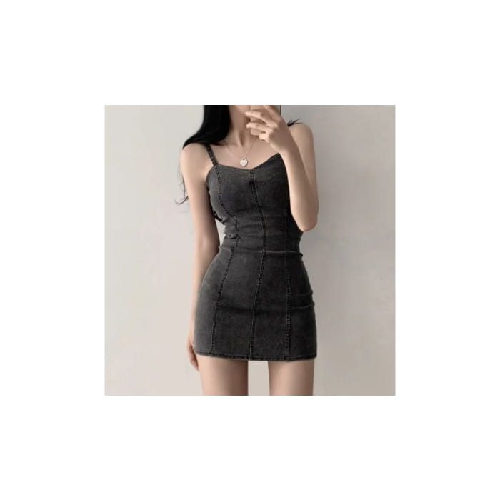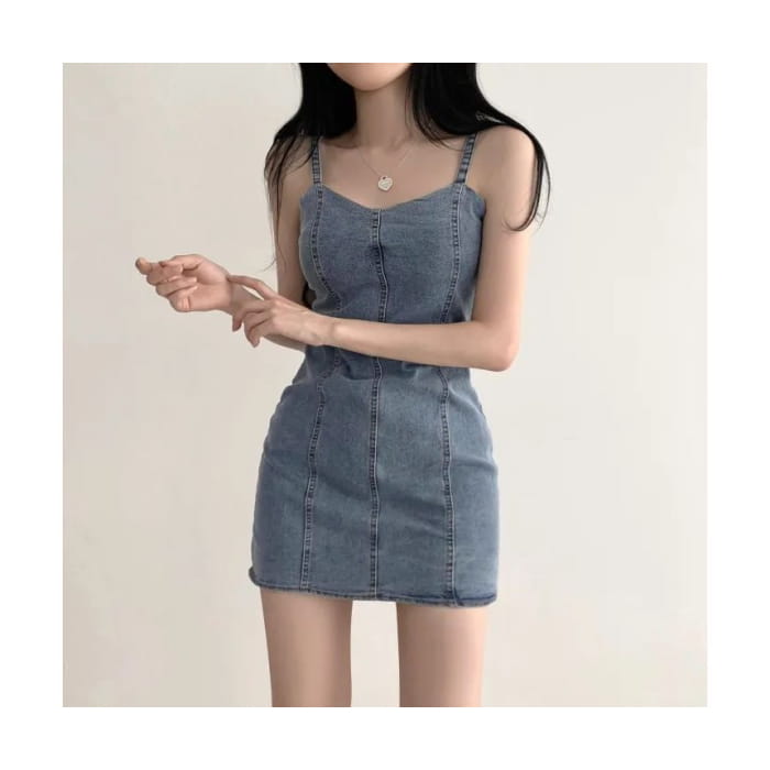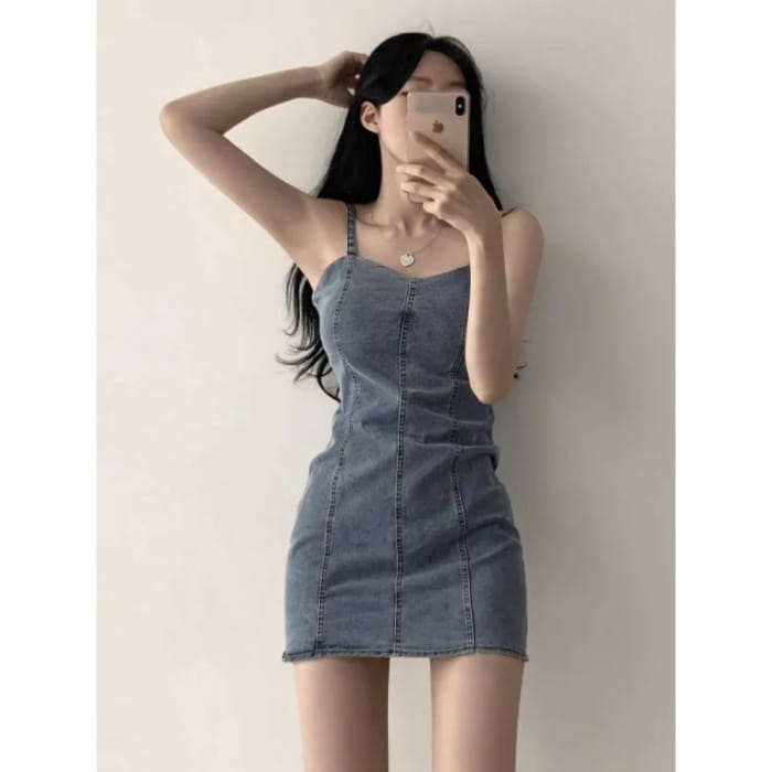 Spaghetti Strap Plain Denim Mini Bodycon Dress
