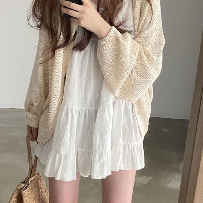 Spaghetti Strap Plain Tiered Mini A-Line Dress