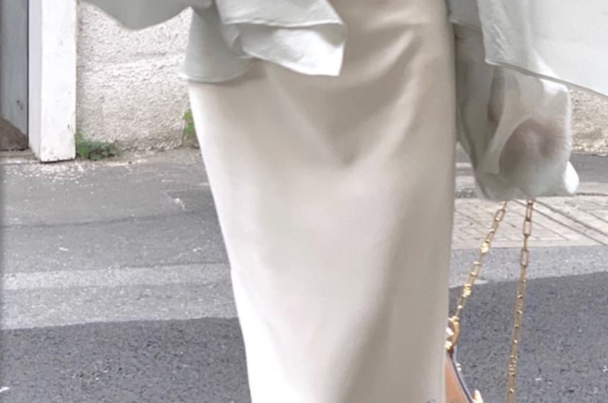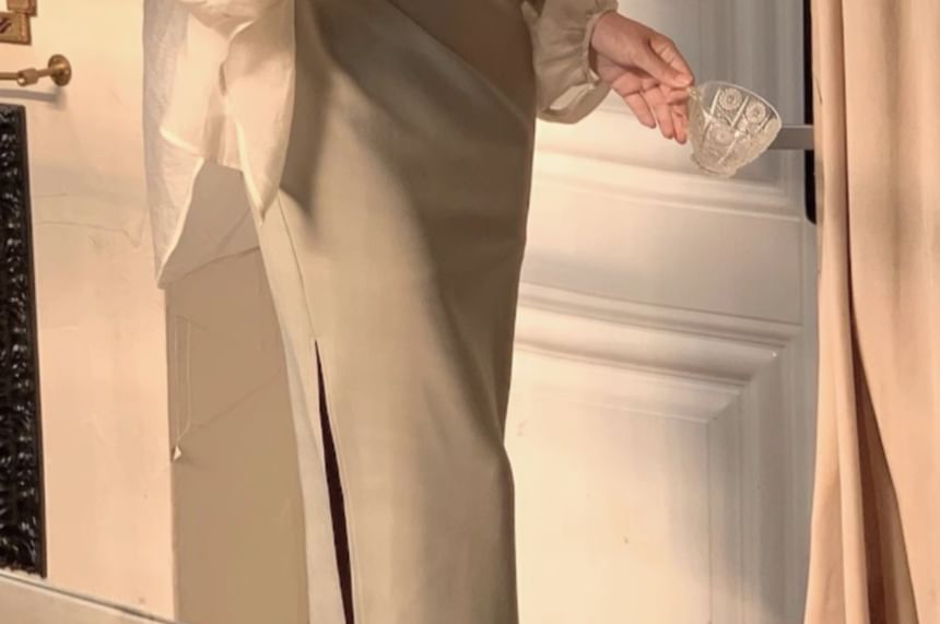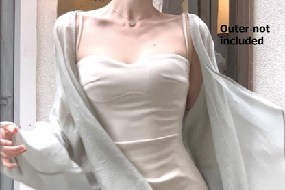 Spaghetti Strap Ruch Plain Side Slit Sheath Maxi Dress