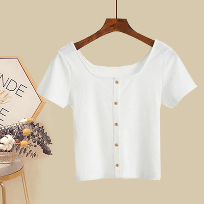 Sqaure Collar Pure Color T-Shirt Floral Print Skirt Set